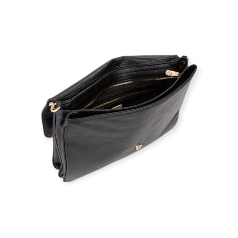 Borsa a spalla con maxi patta in materiale effetto stropicciato.