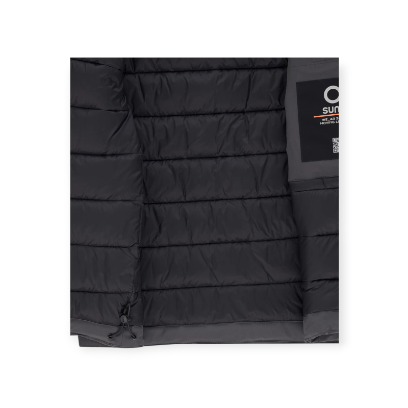 Un giubbotto tecnico imbottito da uomo che combina performance e design essenziale. Caratterizzato da una vestibilità ergonomica e un taglio pulito, è pensato per offrire protezione e comfort quotidiano. La zip frontale waterproof con doppio cursore si unisce a polsini interni in lycra e a tasche laterali con zip termosaldata, per una funzionalità totale. Il logo reflex Suns sulla manica e la pinnetta arancione fluo sul fianco completano il look con un tratto riconoscibile del brand.
